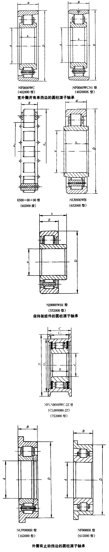 圆柱滚子轴承一般只用来承受径向负荷,与相同尺寸的深沟球轴承相比,有较大的径向负荷能力,极限转速接近深沟球轴承,但与这类轴承配合的轴﹑壳体孔的加工要求较高,允许内圈轴线与外圈轴线倾斜度很小(2°-4°),两轴线倾斜如超越限度,滚子与套圈滚道的接触情况将要恶化,严重影响轴承的负荷能力,降低轴承的使用寿命。所以该类轴承如需要安装在承受轴向负荷作用的主机部件中,只有在同时使用其他类型轴承去承受轴向负荷的前提下,才可使用。