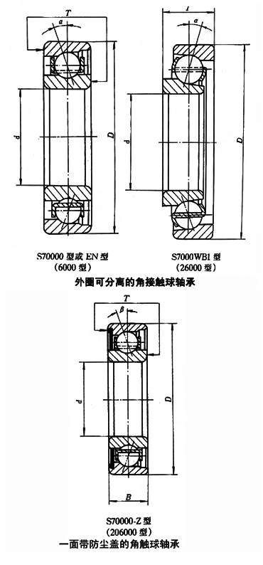 S718/600角接触球轴承 样本结构图